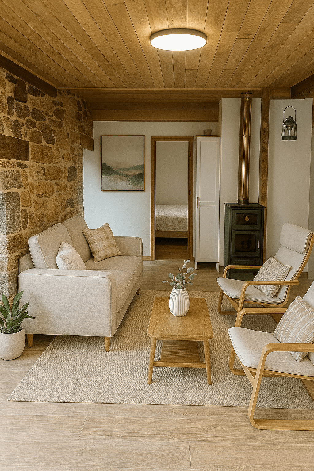 El interior ha sido cuidadosamente actualizado, manteniendo el encanto rústico original. En la planta superior encontrarás un acogedor salón-comedor-cocina de concepto abierto, ideal para reuniones familiares, veladas frente a la chimenea o simplemente disfrutar de la paz del entorno. La vivienda dispone de dos dormitorios (uno doble y otro más recogido), baño, lavadero y espacios que permiten seguir personalizando.